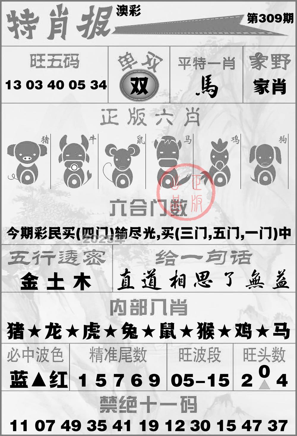 2025年 第309期最新开奖结果